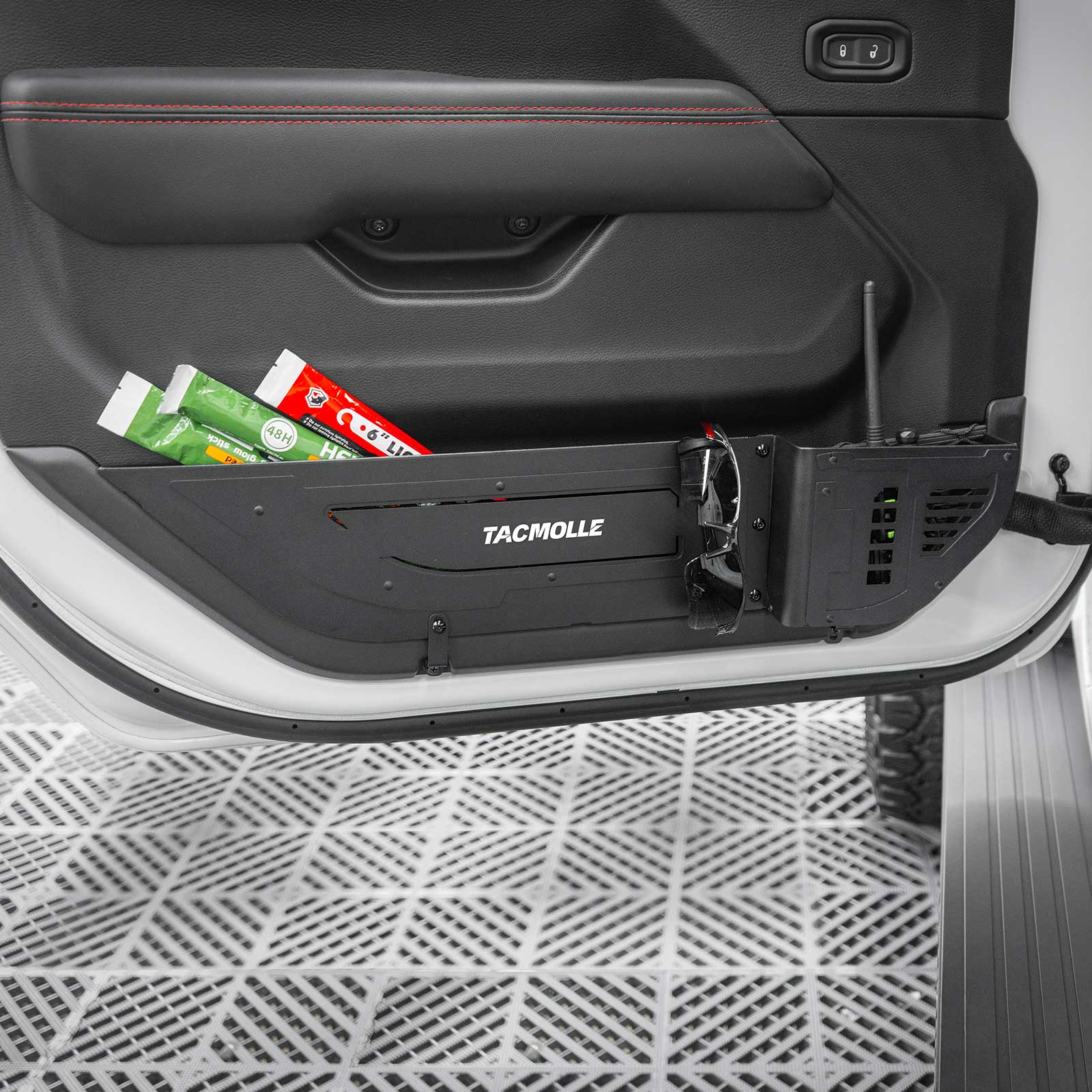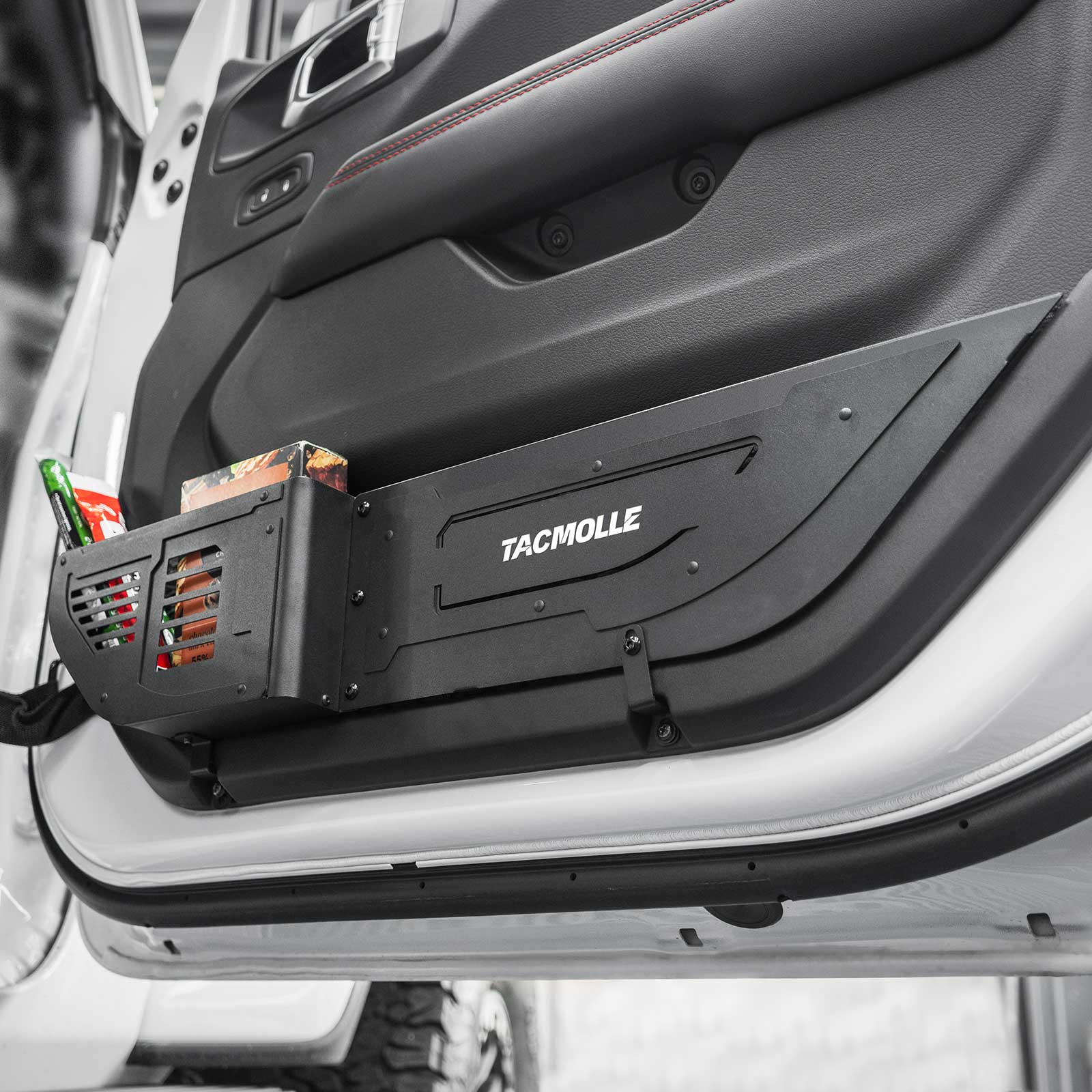 Custom Fit: Front Door Pockets featuring tactical elements, specifically designed for 2018–2025 Jeep Wrangler JL and Gladiator (JT) models
