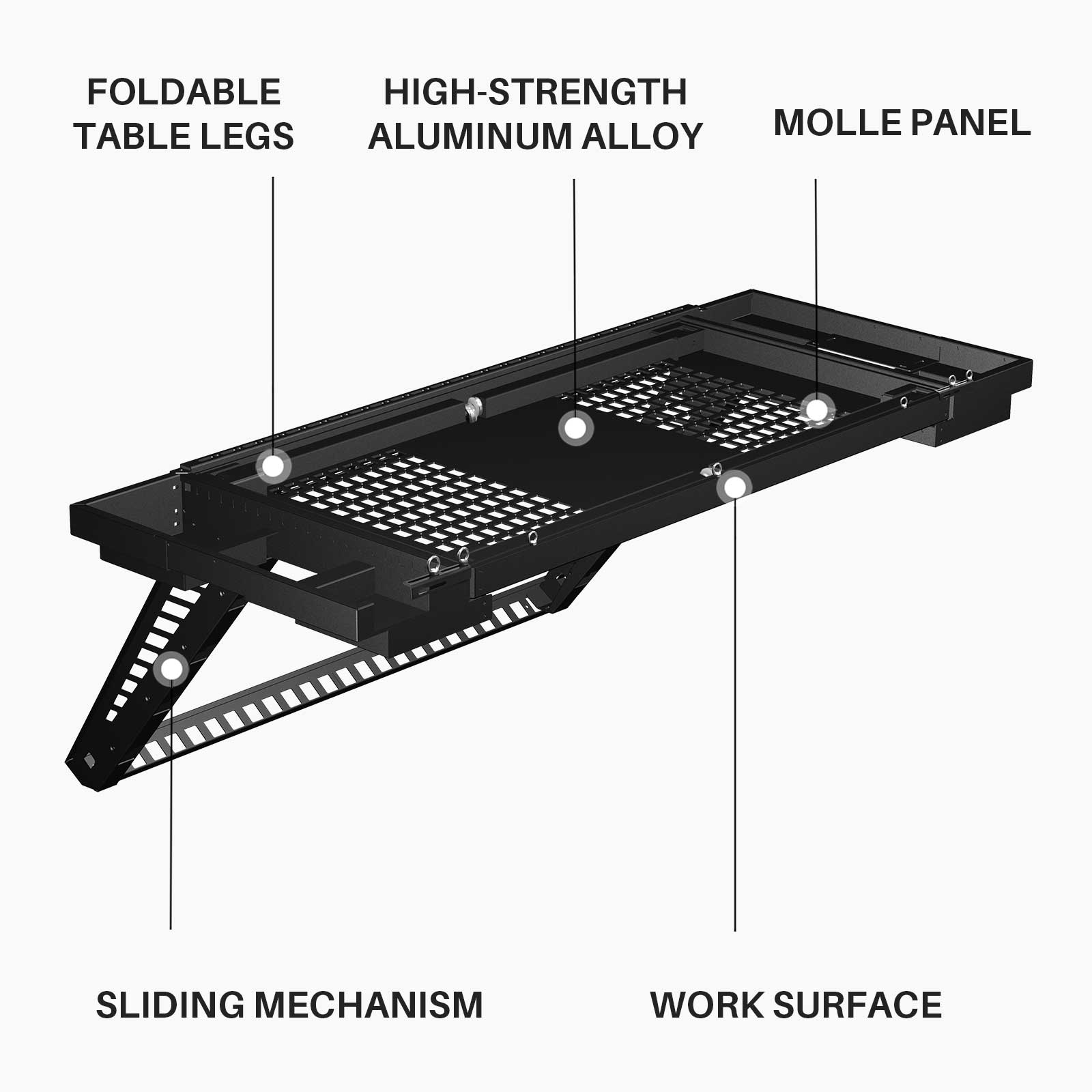 Concealed Work Surface: Equipped with foldable table legs for quick setup; offers a versatile workspace ideal for cooking, dining, or working; perfect for outdoor activities and family gatherings